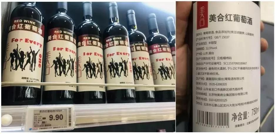 第一個新聞是葡萄酒自媒體“微釀”發(fā)布的一篇題為《9.9元葡萄酒驚現(xiàn)物美旗下超市!背標(biāo)顯示:產(chǎn)地?zé)熍_+總經(jīng)銷》的文章,事情總結(jié)起來就是:物美集團旗下的北京new mart品超市出售一款名為“美合”的葡萄酒,售價只有9.9元,產(chǎn)自中國煙臺。
