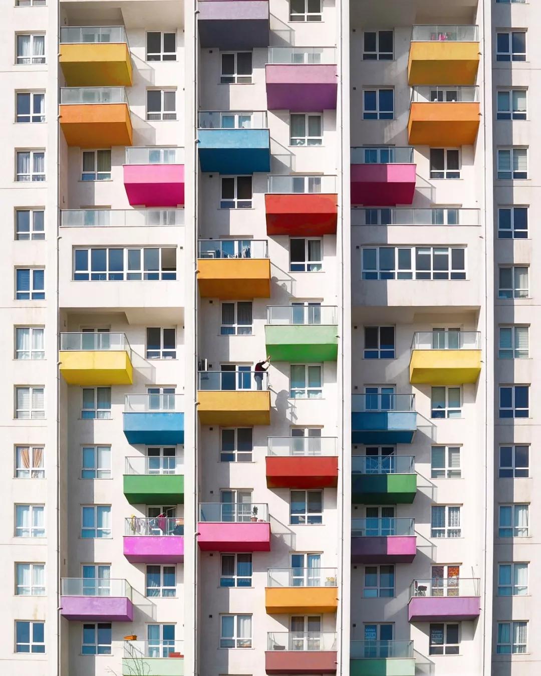 如今,他在Instagram上已經(jīng)有了近二十萬的粉絲,這些粉絲都是被他拍攝的彩色建筑所吸引來的。