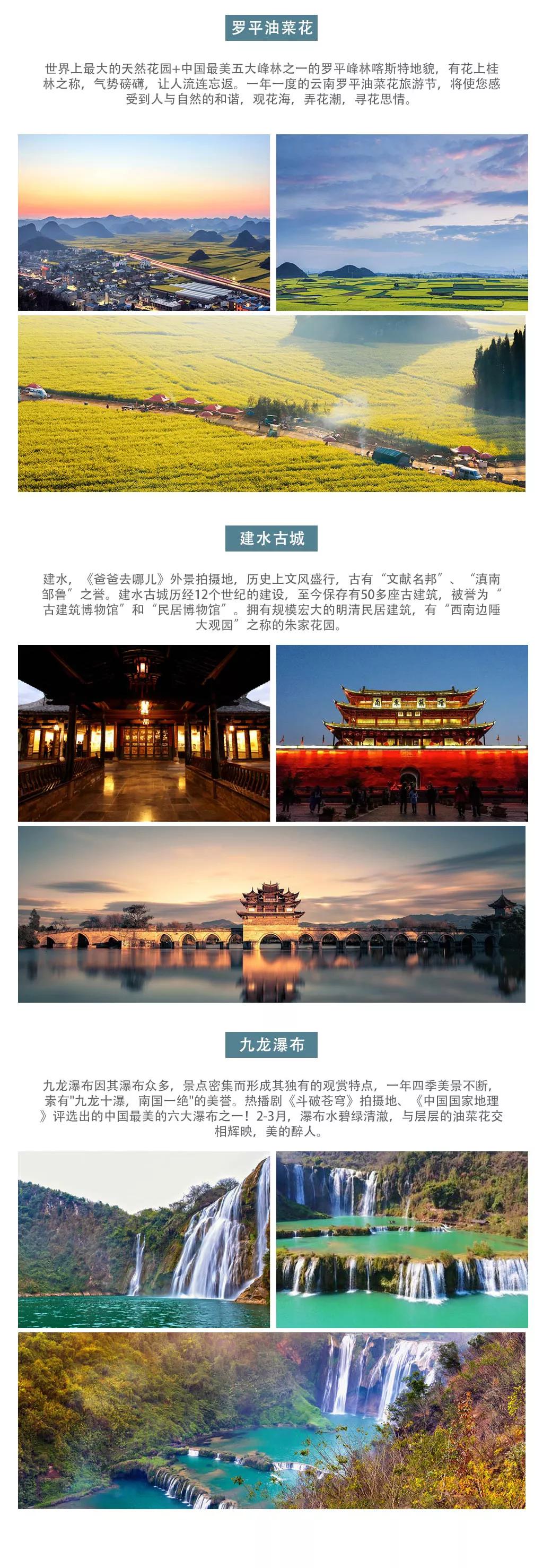 當(dāng)日行程:早起出發(fā)前往熱門影視《斗破蒼穹》拍攝地——羅平縣,到達(dá)羅平縣城后直接前往觀賞中國六大最美瀑布之一的【九龍瀑布】,九龍瀑布群因其瀑布眾多,景點(diǎn)密集而形成其獨(dú)有的觀賞特點(diǎn),一年四季美景不斷,素有"九龍十瀑,南國一絕"的美譽(yù),在約兩公里長的河道上有十級瀑布,九龍十瀑之間,以淺灘或深潭相連,或雄偉、或險(xiǎn)峻、或秀美、或舒緩,千姿百態(tài)、異彩紛呈,裂帛般的白瀑,綠玉般的流水,層層疊疊階梯狀的水臺繞著水瀑蜿蜓而下,從不同的角度審視每次都能發(fā)現(xiàn)新的一層驚喜,邊登高看景邊拍照,渴了買根當(dāng)?shù)爻雒乃}卜,汁多美味,清甜潤喉,一路到九龍瀑頂端,微風(fēng)拂過,看那一波又一波的金色油菜花浪潮;