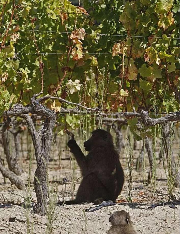 和托斯卡納暴殄天物的野豬相比,南非開(kāi)普敦的狒狒顯然有著更挑剔的品味。隨著葡萄酒業(yè)的興盛,當(dāng)?shù)蒯翎襞c時(shí)俱進(jìn),發(fā)展出了新潮的昂貴品味——吃葡萄。當(dāng)?shù)厝松踔量偨Y(jié)出了經(jīng)驗(yàn):狒狒最愛(ài)吃黑皮諾和霞多麗,它們能辨別出最甜美的果實(shí),只把自己看不上的酸澀葡萄留給釀酒師。