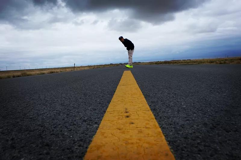 注意事項(xiàng):貼地拍攝,沒(méi)必要非要趴在地上,可以將相機(jī)貼近地面,然后順著路的方向,輕微的翹起鏡頭進(jìn)行拍攝,將路作為一個(gè)“引導(dǎo)線”,加深了畫(huà)面的縱深感。