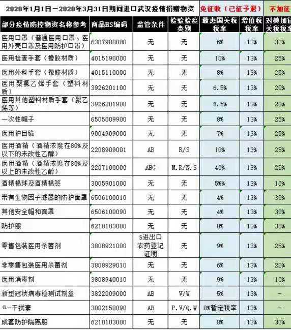 2020年2月1日,財政部 海關(guān)總署 稅務(wù)總局發(fā)布聯(lián)合公告,為進(jìn)一步支持新型冠狀病毒肺炎疫情防控工作,自2020年1月1日至3月31日,實行更優(yōu)惠的進(jìn)口稅收政策。