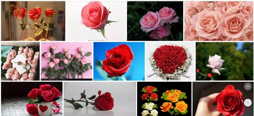 搜索“玫瑰”,得到這樣一大串圖片,它們沒有什么特別、新穎之處。這樣的照片與我們的感知模式一致,因此只是加強了“玫瑰長著樣兒”的固有認(rèn)知,但對圖片本身不會形成記憶。