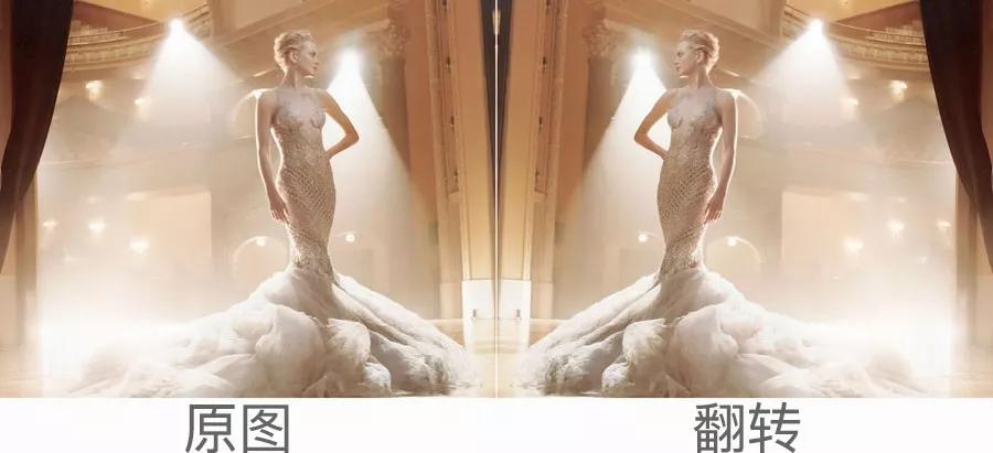人物面部朝右,視覺情感傾向是積極昂揚的,與人物的整體姿態(tài)極為貼合。我們將其翻轉(zhuǎn),會感覺到強烈的不和諧感。