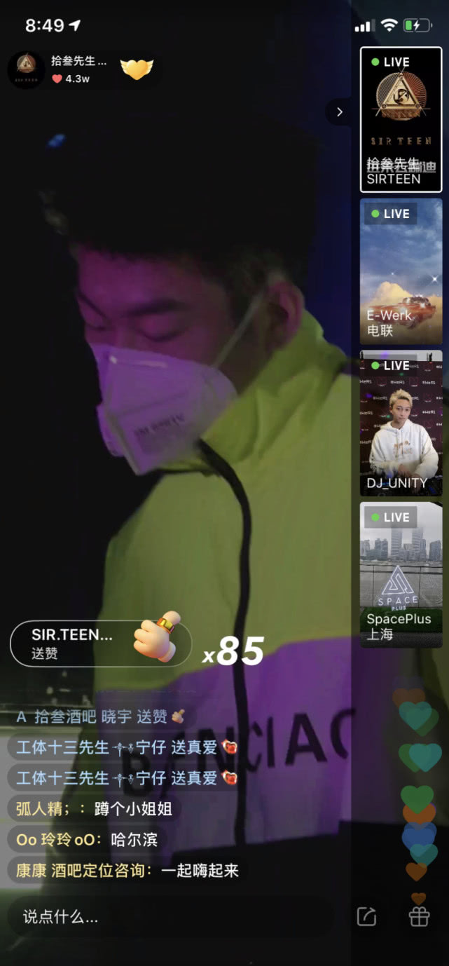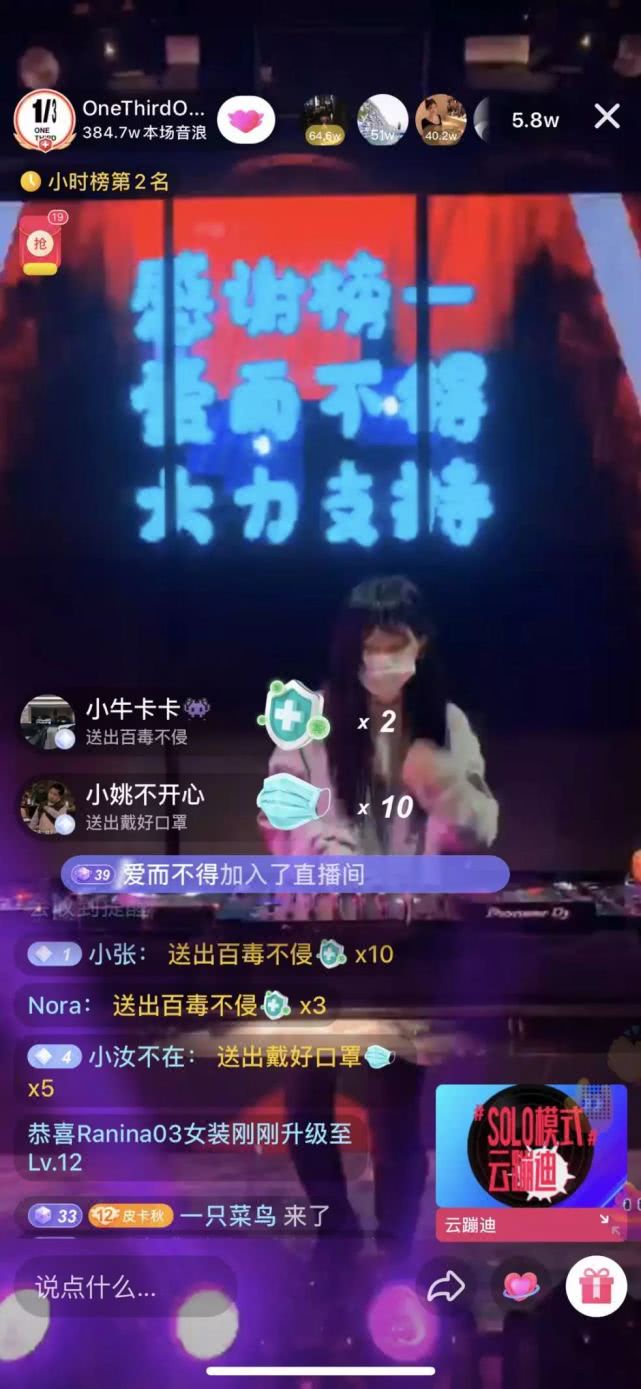 作為一家夜店的招牌之一,DJ們的日子也并不好過。2月11日,ONETHIRD在直播中邀請了嘉賓DJ Tracy。當(dāng)晚,Tracy創(chuàng)下了1小時收入150萬音浪的成績,價值約15萬人民幣,一同歸入了ONETHIRD的公益通道。