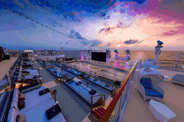 甲板上,有高空飛索表演,有海上煙花匯演,你可以在各式各樣的休閑、娛樂(lè)、美食、購(gòu)物場(chǎng)景中獲得無(wú)數(shù)與眾不同的美好體驗(yàn),當(dāng)然,你也可以什么都不體驗(yàn),只是吹著海風(fēng)看看世界。