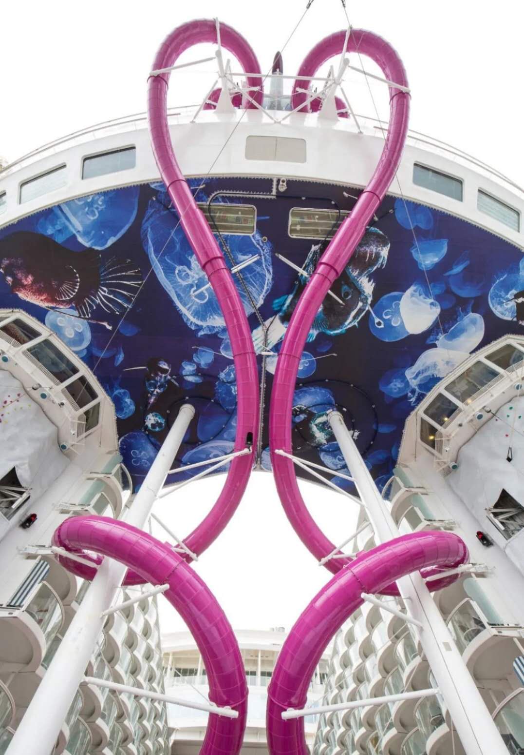 “海洋和諧號”是第一艘考慮到滑水道設(shè)計的皇家加勒比郵輪。2016年1月,皇家加勒比在“海洋自由號”上進行滑水道測試,然后在海洋和諧號上實現(xiàn)。