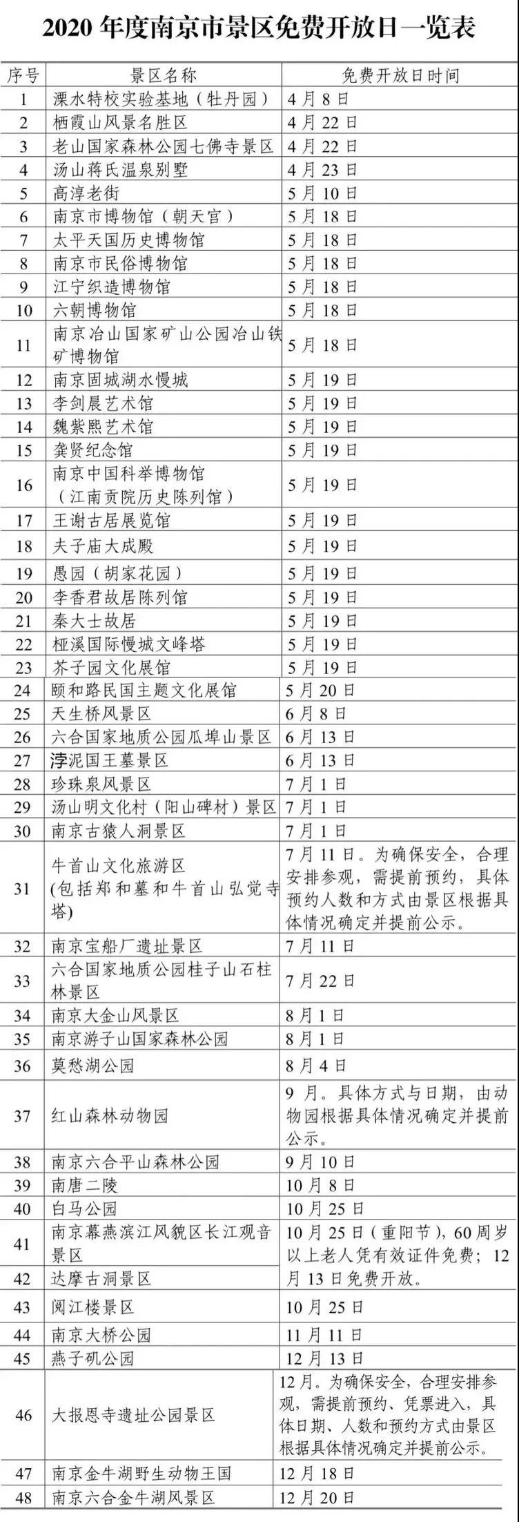 今年,南京共有48家旅游景點(diǎn)限時(shí)免費(fèi)開(kāi)放,包括棲霞山、朝天宮、六朝博物館、南京中國(guó)科舉博物館、胡家花園……實(shí)行免費(fèi)景區(qū)名單如下: