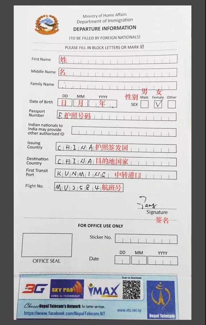 抵達加德滿都國際機場,進入航站大樓穿過走廊后,達到入境大廳。在桌子上,可以很容易找到入境卡。如果乘坐國內航空公司飛機入境,飛機快抵達時,空乘人員會給每位乘客分發(fā)一張入境卡,如果空乘沒有主動給,自己可以在飛機上向空乘人員索要入境卡。入境卡是每個人都務必填寫的,包括已辦理好簽證和準備辦理落地簽的游客。