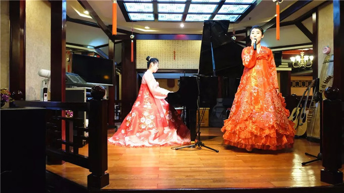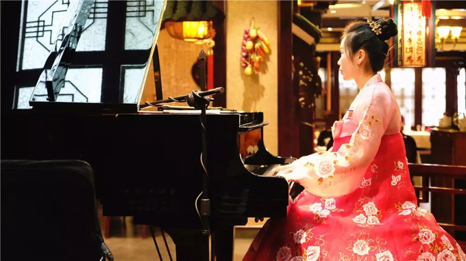 這些女孩能歌善舞、多才多藝。餐廳每天都有固定的時(shí)間是文藝表演,她們一到點(diǎn)便會(huì)換下工作服,換上漂亮的演出服在大堂里彈鋼琴、唱歌。