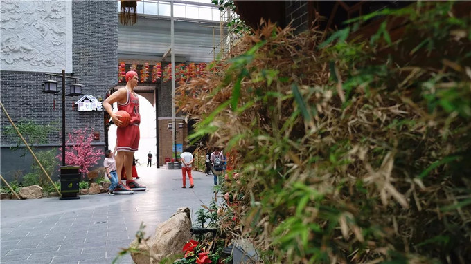 門口的灌籃高手塑像巨大、醒目,很多人在這里合影留念,也不知道能不能拍到全部的臉。