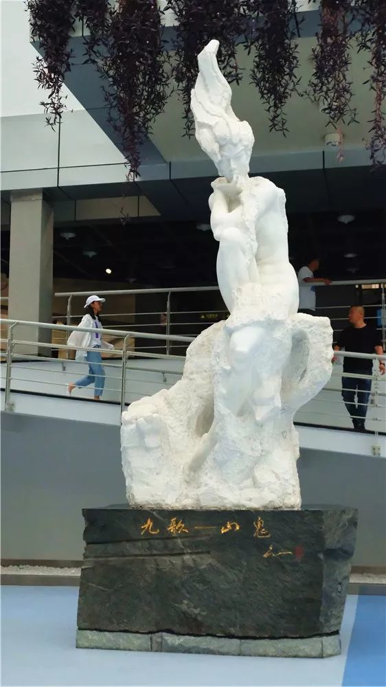 聽完了雕塑的故事,才感受到山鬼的美麗、率真、癡情,那內(nèi)心的獨(dú)白句句交織,多情的形象栩栩如生。