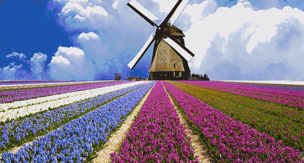 這里不僅風景優(yōu)美,還擁有3500公頃荷蘭最大的球根花田。一望無際的郁金香花田和高高矗立的風力發(fā)電機組成了一幅綿延100公里的美麗畫卷。