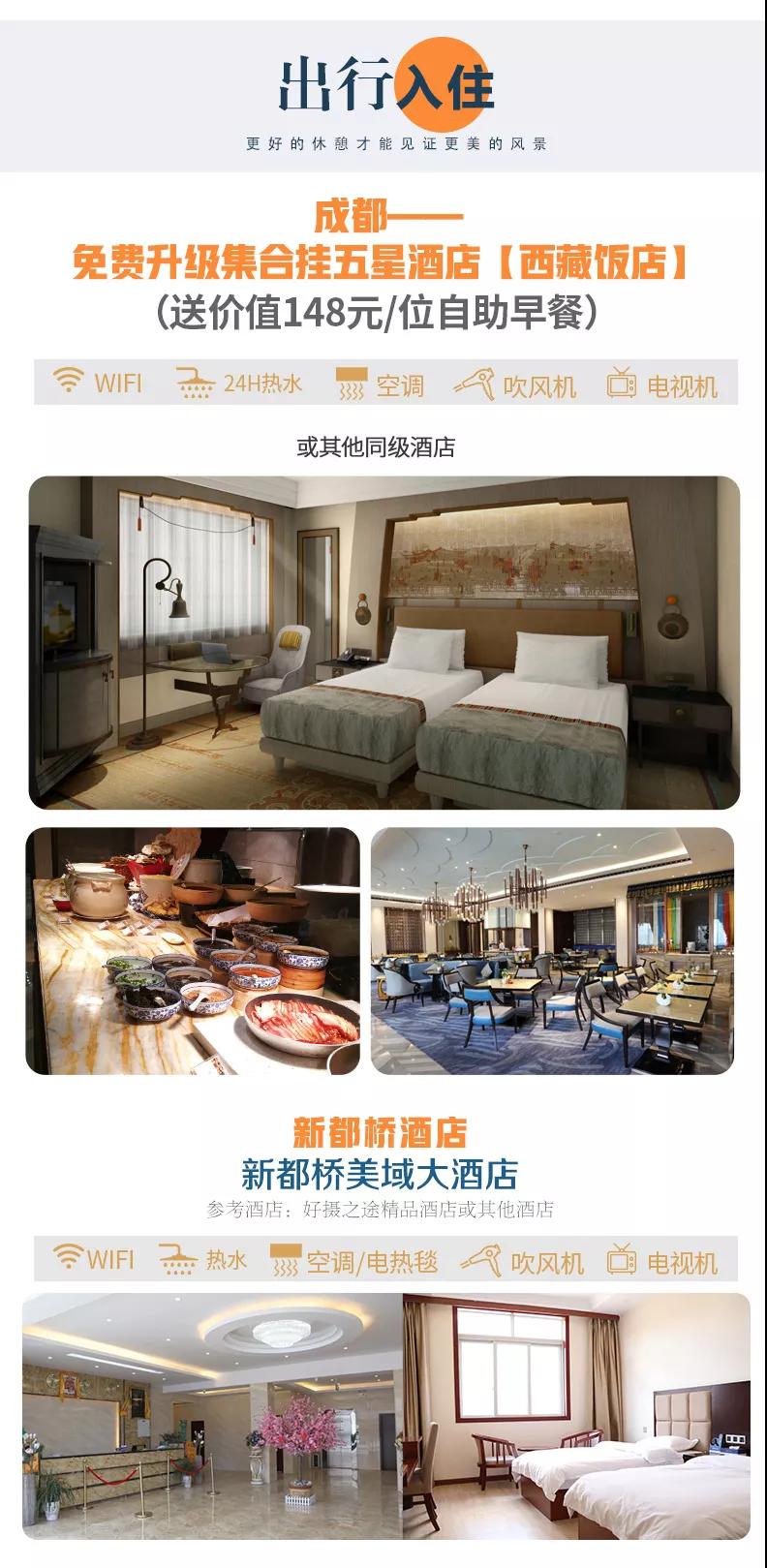 3、住宿:行程所列10晚住宿費,免費升級一晚出行前成都集合掛五酒店(西藏飯店,含148元自助早餐);因沿途條件有限,如酒店設(shè)施達不到您的期望,請您諒解。