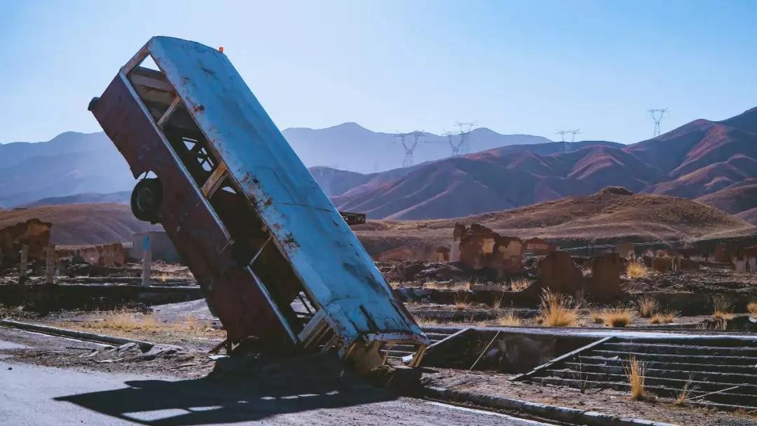 離開翡翠湖,我們來到【阿克塞石油小鎮(zhèn)】。石油小鎮(zhèn)原本是一個連名字都沒有,只有一個地級市的代碼404的神秘小鎮(zhèn),1983年遭到不明原因的襲擊,荒漠中的繁華小鎮(zhèn)一夜之間變成了一座空城。后來因為大熱電影《九層妖塔》在這里取景,才漸漸為人所知?,F(xiàn)在走在小鎮(zhèn)上,還依稀可見當(dāng)初的幼兒園、醫(yī)院、禮堂、清真寺、教堂等建筑的廢墟,襯在一望無垠的戈壁上,顯得更加蒼涼玄幻。石油小鎮(zhèn)就像一座界碑,前方是沙漠,后方則是大片的草原和神圣的雪山,照片上雪山顯的很遠,實際上就在眼前,從廢墟中看去,仿佛罪魁禍?zhǔn)拙褪沁@座綿延的大山...