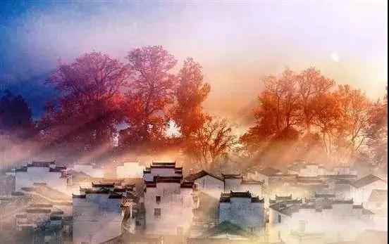塔川烏桕樹經(jīng)過霜降,由綠變黃,由黃變紅,漸變出調(diào)色板般豐富的色彩。塔川的清晨極美,薄薄的霧氣似有似無,籠罩在山腰,林間,農(nóng)家的小屋若隱若現(xiàn),紅楓叢中小露飛檐翹角,黃葉微隙掩映粉墻黛瓦,如中國山水畫般詩情畫意。