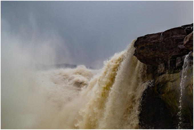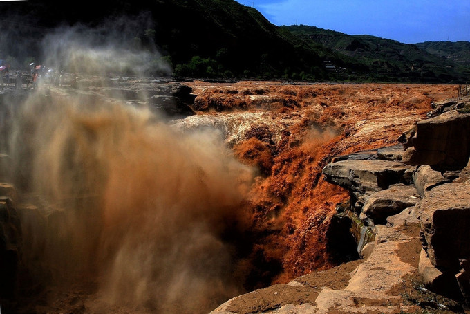 一是300米寬的黃河擠進(jìn)小小的壺口后轟然落下,瞬間迸發(fā),或是砸入澗底,由此水汽飛漲,就形成了水里冒煙的奇景。