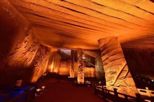 龍游石窟曾經(jīng)深藏水底,當(dāng)?shù)厮追Q深水潭。從石窟陳列館展示的圖文、錄像資料中了解到,關(guān)于石窟形成之謎,說法有多種,囤兵、囤糧,祭祀、采石……甚至稱旅游界已譽(yù)此為“世界第九大奇跡”,使人產(chǎn)生豐富的遐想,探謎的游人絡(luò)繹不絕。