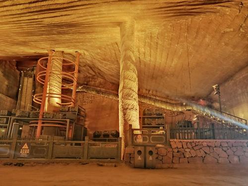龍游石窟為什么要向山中、地下采石,而不是露天開采?有過生活經(jīng)歷的老師說:“山體內(nèi)部的石頭,往往比山殼上的要松脆些,這對(duì)原始采石來說比較容易?!笔呃餅楹斡心敲炊鄰d、柱?也因?yàn)槭|(zhì)松脆,所以古人要在各采石區(qū)(就是今天看到的廳)之間保留石壁,在廳中留幾根石柱,以支撐山體,以致形成幾個(gè)廳互不相通的格局。至于廳壁為什么能那么?。窟@并不需要什么高科技手段,經(jīng)驗(yàn)豐富的采石工憑借敲擊聲就可以判斷自己和對(duì)方的距離,煤礦營(yíng)救不也常常借助敲擊聲嗎?