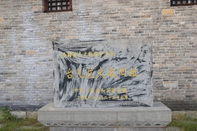 臺(tái)兒莊大戰(zhàn)遺址公園,位于臺(tái)兒莊古城較熱鬧地段,遺址公園內(nèi)保存有幾座臺(tái)兒莊大戰(zhàn)時(shí)的老宅,老宅墻壁上的累累彈孔默默訴說(shuō)著當(dāng)年戰(zhàn)爭(zhēng)的殘酷性,也是講述臺(tái)兒莊大戰(zhàn)及緬懷中華民族一寸山河一寸血不屈的抗戰(zhàn)精神的圣地所在。臺(tái)兒莊大戰(zhàn)遺址公園也是各旅行團(tuán)游覽的第一站,因此,此地為臺(tái)兒莊古城景區(qū)內(nèi)人氣最旺的景點(diǎn)所在,我想這也是為了緬懷革命志士,宣傳臺(tái)兒莊不屈不撓的抗戰(zhàn)精神。