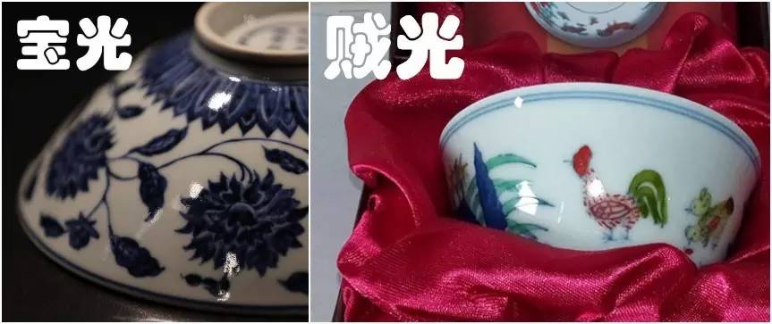 首先,“寶光”“賊光”之說就只是一種感覺,一種主觀的感受,來源于對象的瓷。瓷在對面,光在四周,照于瓷面,反射各方,您的眼睛在一定的角度就收到一束光,有了映象,傳感到神經(jīng)記憶庫,對比,您就會(huì)有一種感受,或覺得含蓄、內(nèi)斂、內(nèi)在、不刺眼,或覺得浮躁、張揚(yáng)、外在、刺眼。接著,您就下結(jié)論了:“開門”!“大新活”!