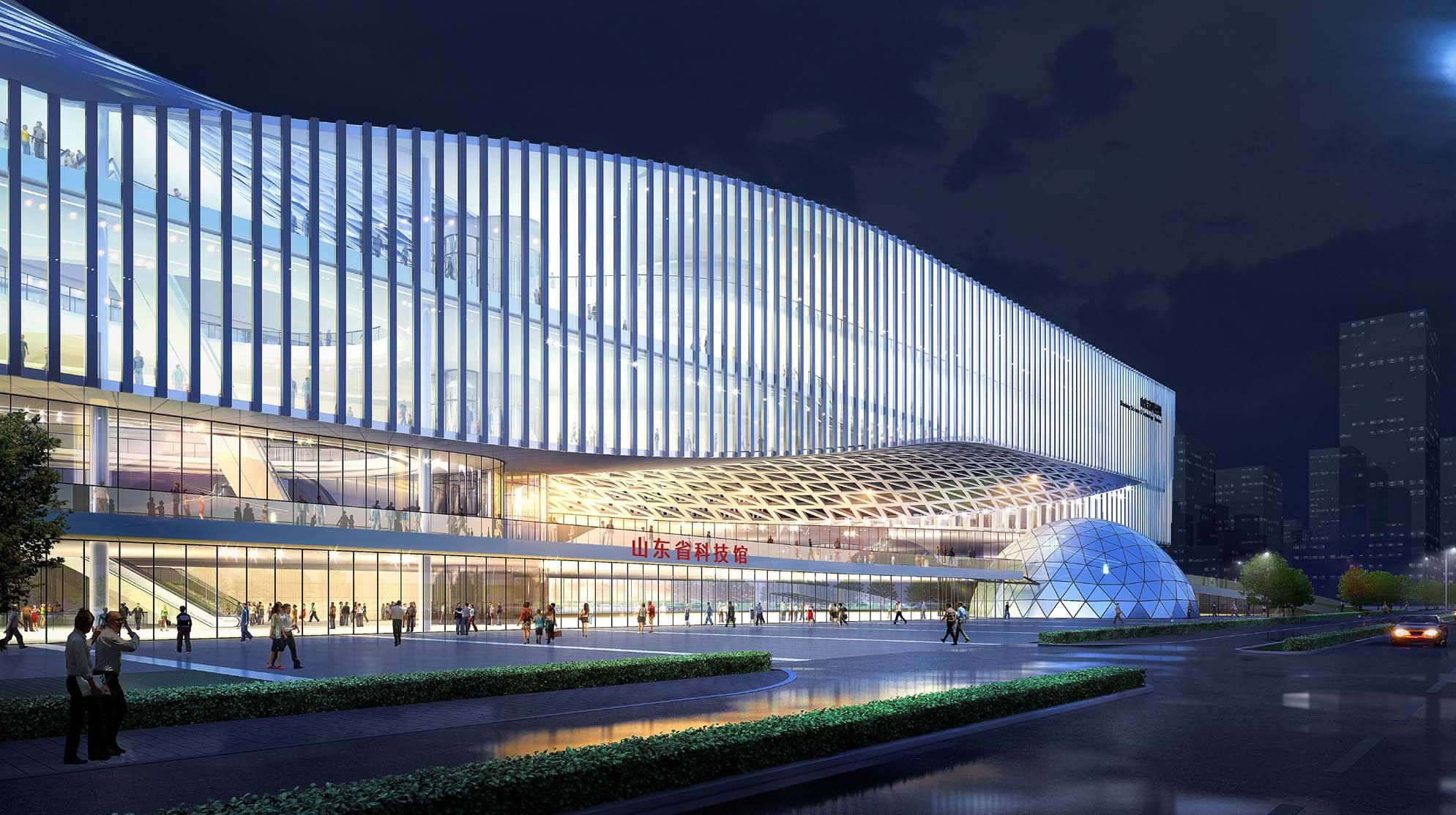 山東省科技館位于泉城廣場最東側,是在原濟南劇院和美術總廠已有建筑的基礎上擴建而成的。最高位五層,新建部分高度達22.95米,擴建后的總面積近2萬平方米。一直四層為各類別的展廳,四層頂面上設有天象儀和大型電子屏幕。山東省科技館是一座普及科普教育、進行科技宣傳的大型現(xiàn)代化科技展館。