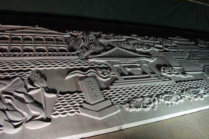 《泉城攬勝》浮雕位于廣場中部、下沉廣場東側,長30米,寬2.5米,選自珍珠白花崗石雕刻而成。浮雕以多場面組合的構成手法,將泉城“三大名勝”、“四大泉系”、“齊煙九點”、“靈巖圣境”、“四門古塔”、“龍山文化”等景觀和文脈融為一體,充分體現(xiàn)了“山、泉、湖、城、河”泉城特色,展示了泉城濟南豐富多彩、古老莊重的文化風貌。
