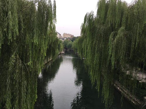 濱河廣場沿護城河南北兩岸呈帶狀,是泉城廣場內的親水空間,形成了獨具特色的城市步行體系(環(huán)城公園游覽路線)。除保留原河岸種植的垂柳外,岸邊區(qū)設計了花壇、花缽、坐椅、石凳。在地下商場北出入口,建筑物上沿部分的種植池內,栽植迎春、常春蔓、爬墻虎等藤本植物。濱河廣場地面鋪鵝卵石及彩色地面,小橋流水、亭臺水榭,名泉環(huán)佩,泉水淙淙,楊柳依依,又現(xiàn)“家家泉水、戶戶垂楊”的勝景。濱河廣場宛如小家碧玉,溫婉玉潤,帶給你江南水鄉(xiāng)般的清涼。