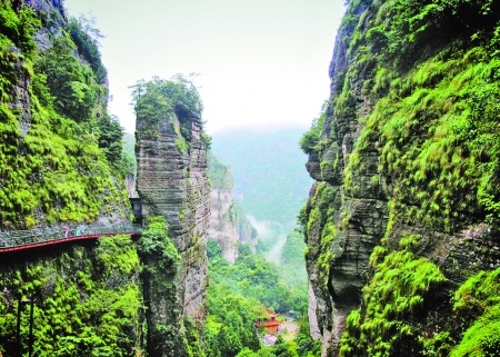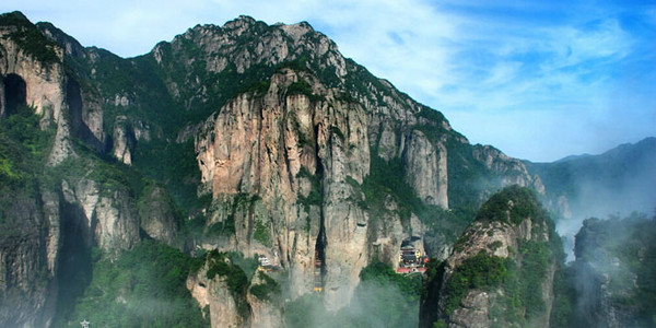 大龍湫位于谷底連云嶂,水從卷壁中凌空騰飛而下,落差197 米,為中國瀑布之最,有“天下第一瀑”之譽。大龍湫瀑布是我國最長的瀑布,它的附近有一股說不出的涼爽,空氣格外的清新,冬暖夏涼。建議最好在八、九月間挑個雨后晴朗的日子,水量極大又可觀五色長虹,一舉兩得。 ·此外,四周的崖壁上布滿了歷代文人墨客的題詞,也是這里的一個看點。