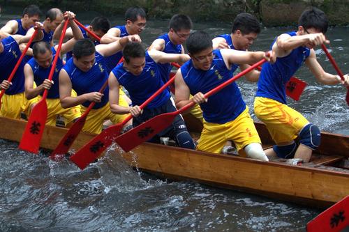 龍舟競(jìng)度最早是古代南方吳越先民祭龍祖的一種祭祀活動(dòng)形式,南方先民使用舟船普遍,往往在舟船畫上龍圖形作為部族的圖騰或保護(hù)神。扒龍舟是端午節(jié)的一項(xiàng)重要活動(dòng),故又稱龍舟節(jié)。