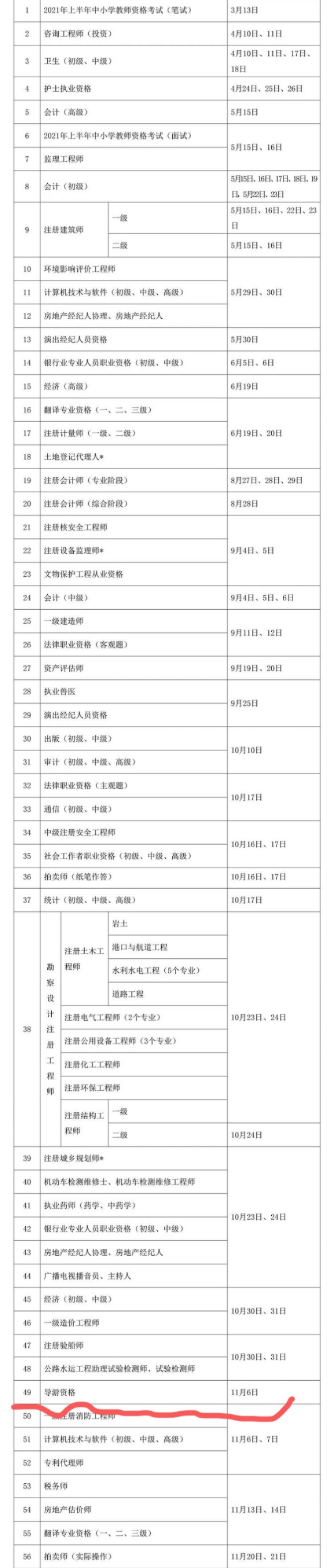 請(qǐng)按照《2021年度專業(yè)技術(shù)人員職業(yè)資格考試工作計(jì)劃》(見附件)做好各項(xiàng)考試組織實(shí)施工作。2021年下半年中小學(xué)教師資格考試日期由主管部門另行通知。專業(yè)技術(shù)人員計(jì)算機(jī)應(yīng)用能力考試日期由各地自行確定。