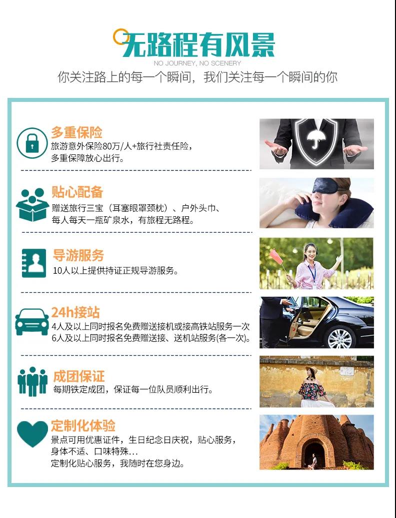 (6)4人及以上免費贈送接機或接高鐵站服務(wù)(單程一趟);6人及以上同時報名該線路,免費贈送接、送機站服務(wù)(各一趟)。