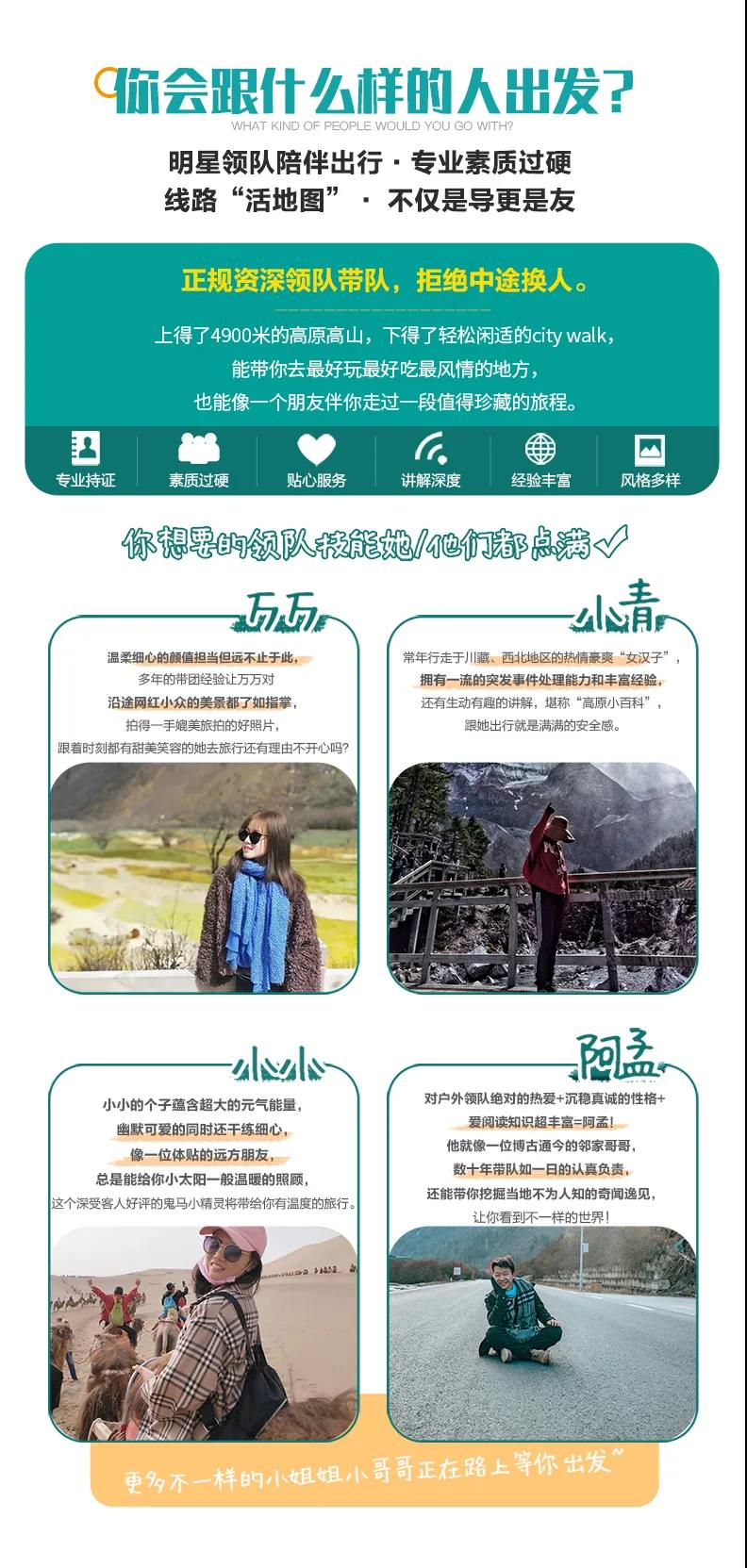 私人訂制:我們業(yè)務(wù)范圍囊括了全國各大城市,川西、西北、東北,在路上永遠有我們的身影。我們將為每一個有定制需求的你策劃出獨屬于自己的完美旅行。