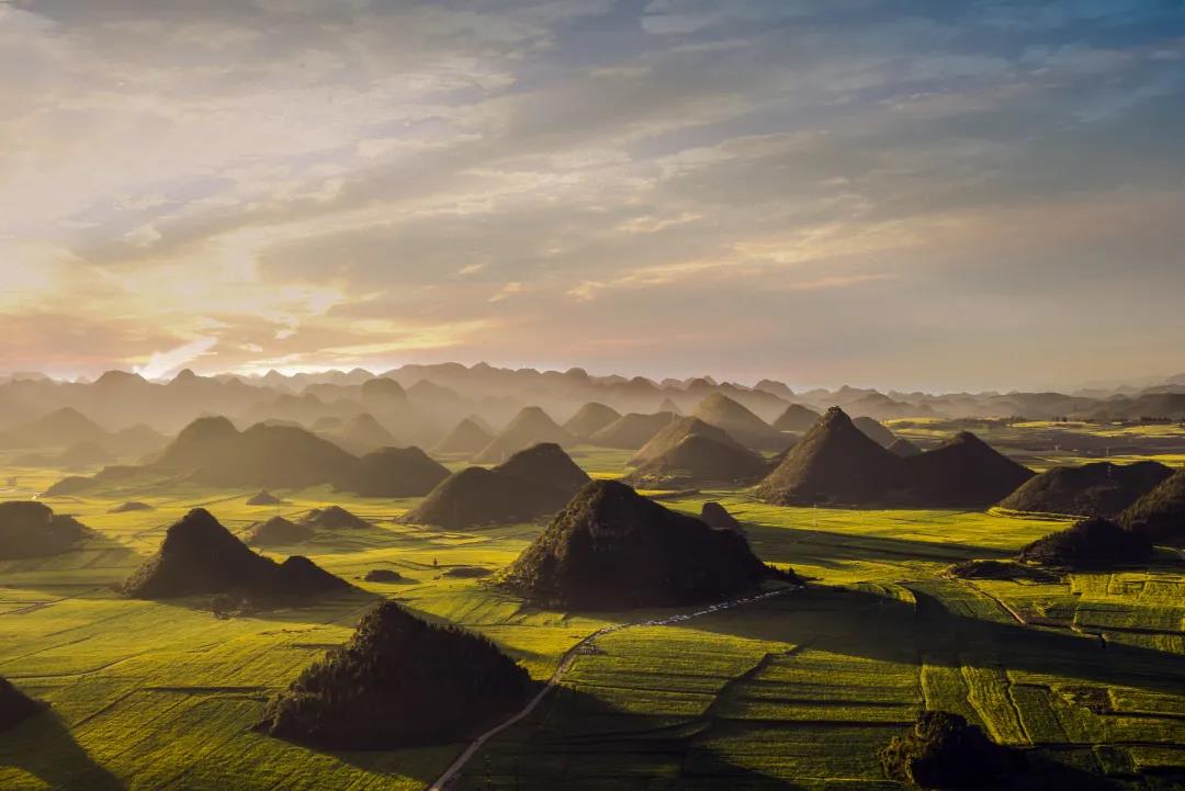 下午晚點我們前往羅平【金雞峰】,這里的時間都是給你的,你可以去金雞峰山頭上拍攝,天氣好可以拍攝到耶穌光射到云霧中若隱若現(xiàn)的油菜花以及金雞峰群;或者是選擇在不高的山峰間游走,看初春抽新嫩;還可以穿上我們特地為您準備的特色民族服裝,在漫山遍野的油菜花中放飛自我,凹好造型盡情拍照!