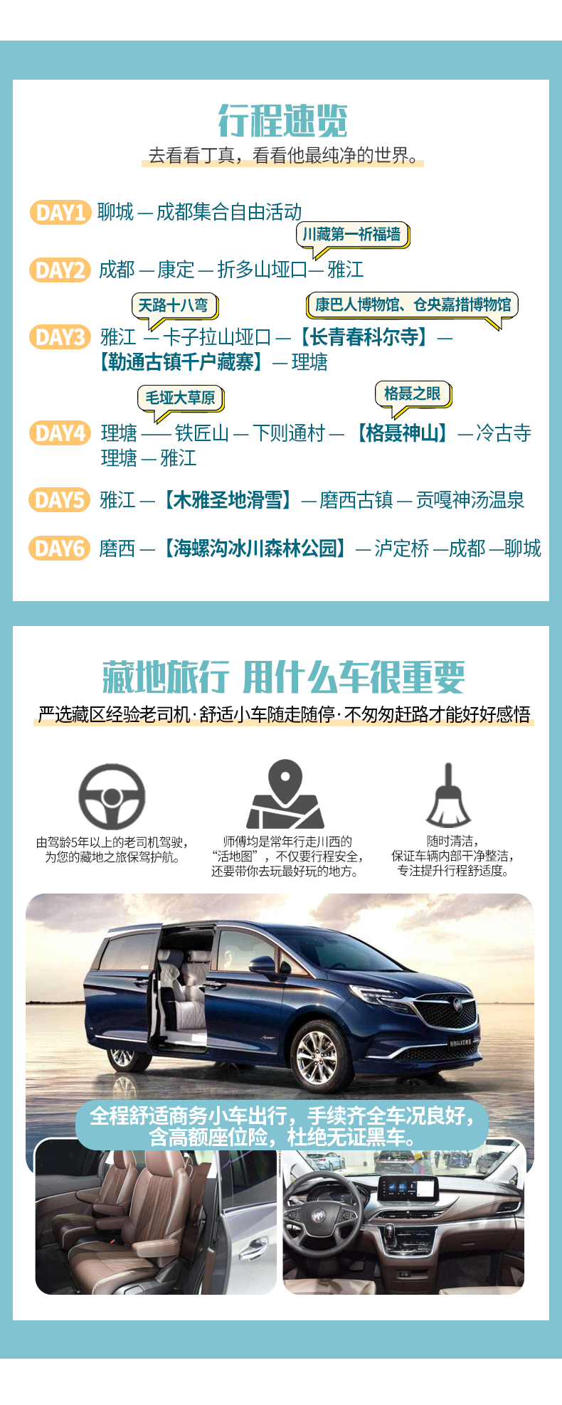半自由行出游,由經(jīng)驗豐富的藏區(qū)老司機提供向導服務,帶大家去最好玩的地方。