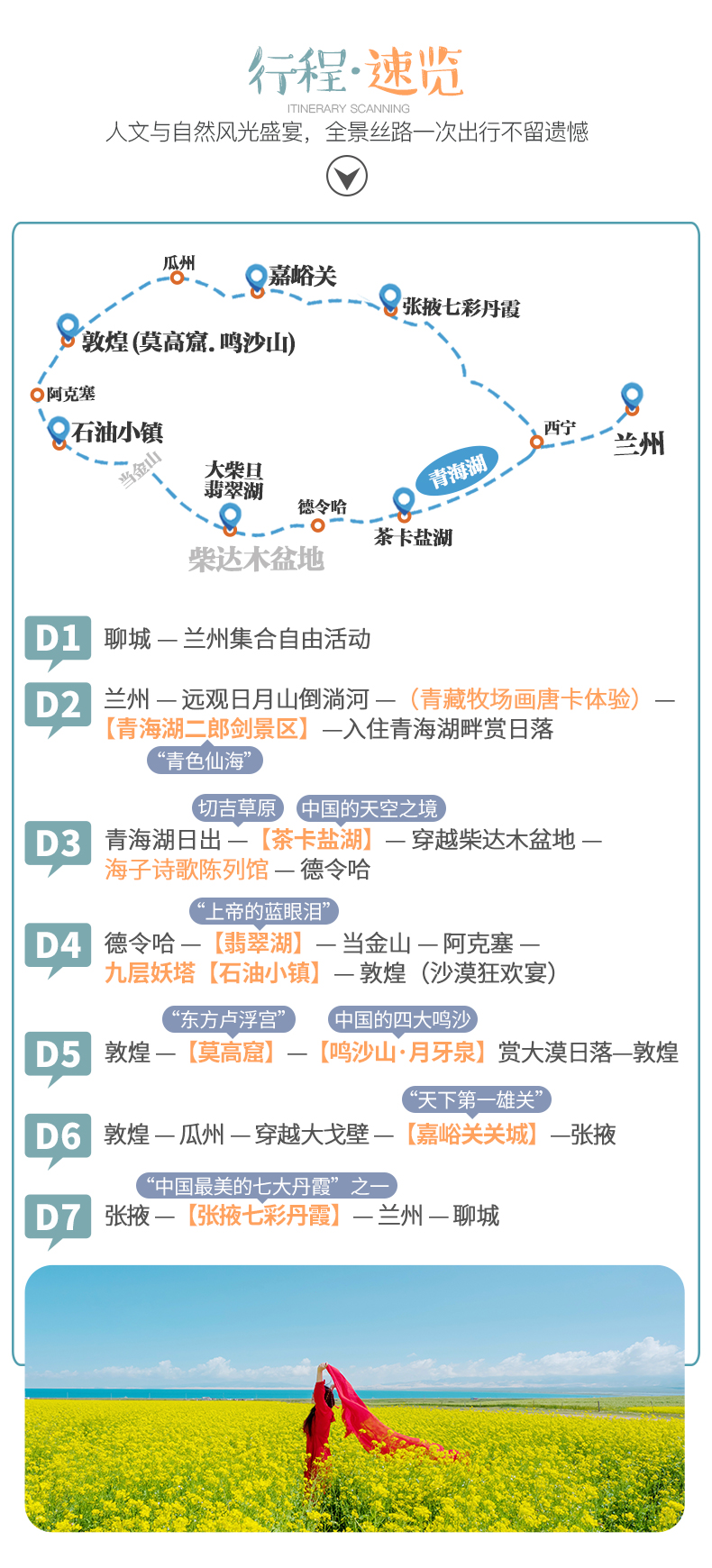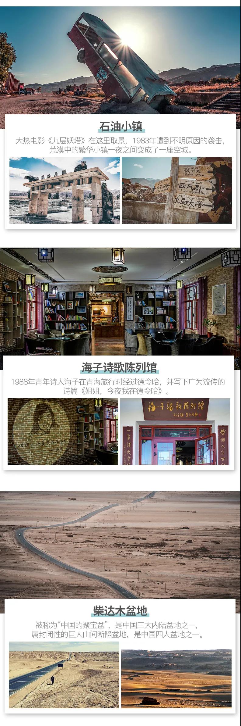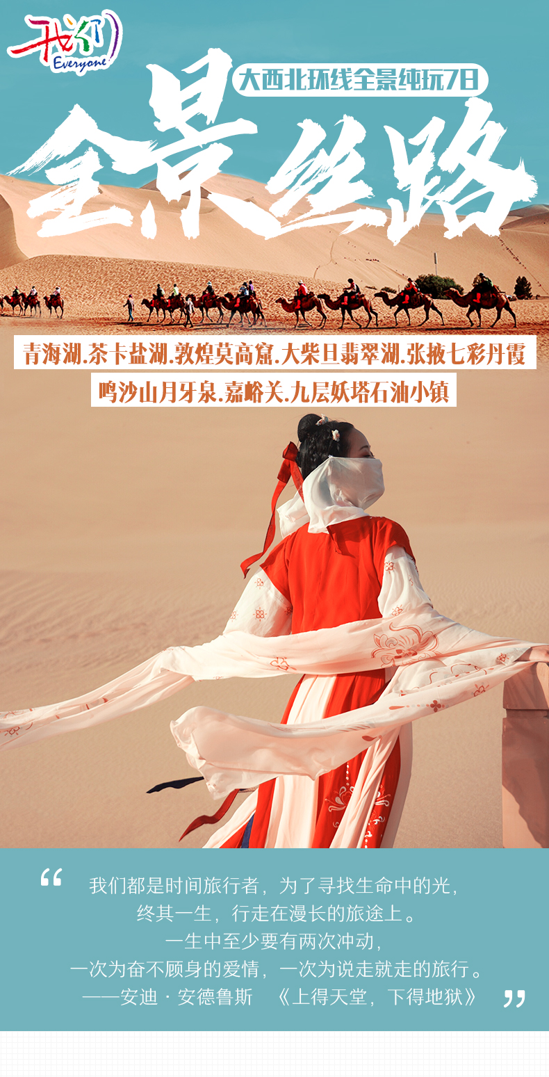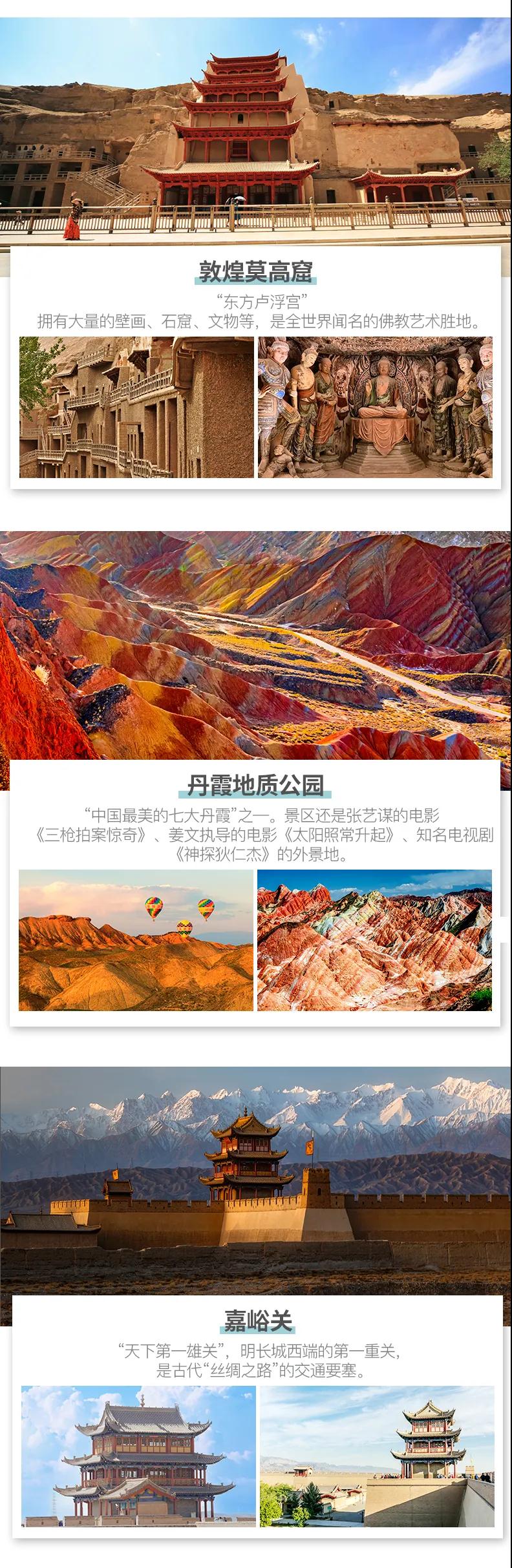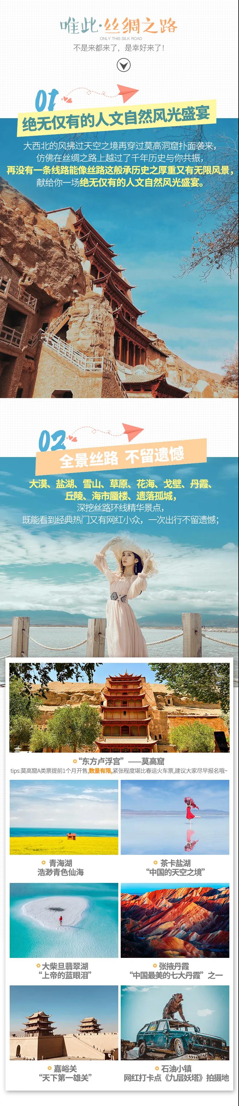 青海湖+茶卡鹽湖+莫高窟+大柴旦翡翠湖+張掖七彩丹霞+鳴沙山月牙泉+嘉峪關(guān)+九層妖塔石油小鎮(zhèn)經(jīng)典絲路