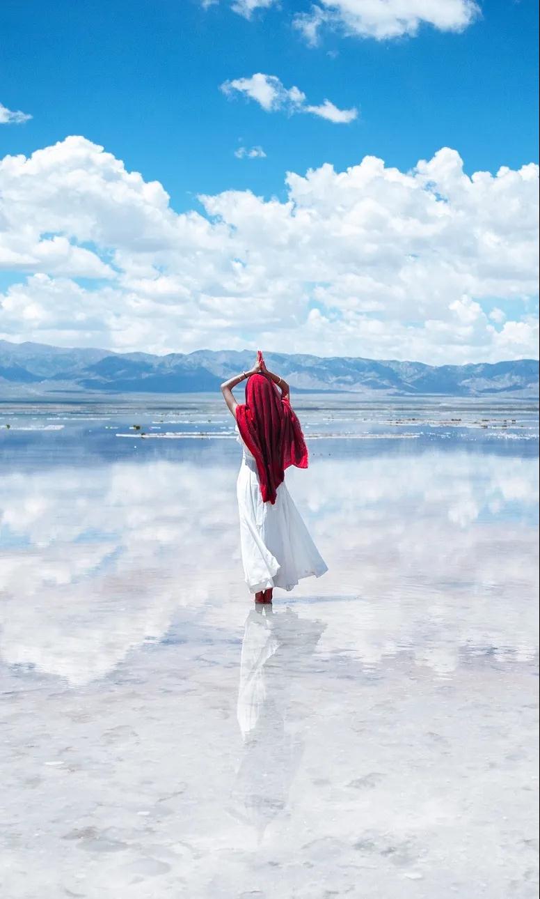 茶卡鹽湖被國家旅游地理雜志評為“人一生必去的55個地方”之一,這里的采鹽歷史非常悠久,湖水含鹽量很大,湖面上會自然結(jié)晶,一片純白。結(jié)晶之上是一層薄薄的露水,將天空、云朵和對岸的山都倒映在白色的湖里,非常漂亮,所以也被稱為“中國的天空之境”。大家可以乘坐景區(qū)內(nèi)的小火車前往景區(qū)深處游玩,如果不乘坐小火車,沿著鐵軌向湖深處散散步拍拍照片也是非常愜意的。