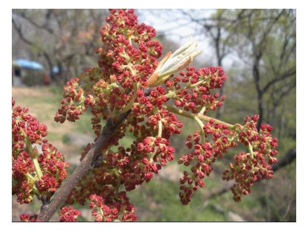 黃連木花期3月~4月,花粉量多、含蜜量大,是早春重要的蜜源植物。種子經(jīng)榨取油脂后的渣粕含有蛋白質(zhì)和大量粗纖維是優(yōu)良的動(dòng)物飼料。