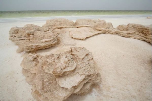 鹽晶體慢慢堆積形成的,就像石筍的形成過程一樣