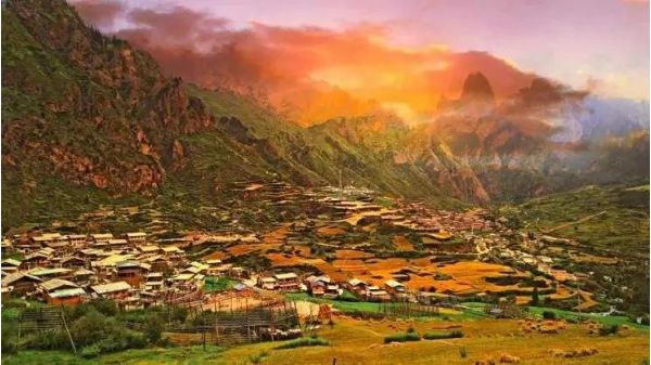 那里的山峰、村寨,在陽光的照耀下,呈現(xiàn)著夢幻般的色彩,如一幅絕美的風景油畫。
