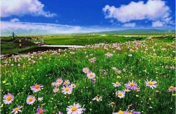 夏天的??撇菰G草如茵,牛羊遍野,各種野花爭奇斗艷,幾十座白色的帳篷點綴在綠草地上,眼前的一切似乎夢里才會見到,美的極不真實。