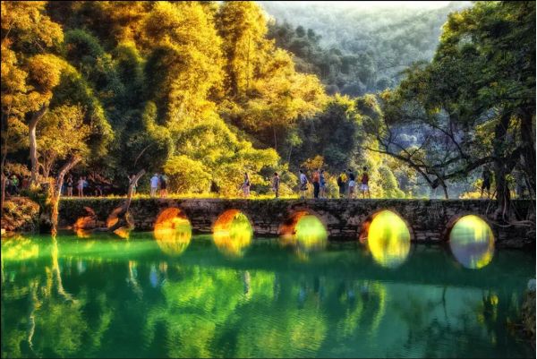 早餐后前往國家AAAAA級(jí)風(fēng)景區(qū)【小七孔】(游玩時(shí)間約4小時(shí));景點(diǎn)之間需換乘電瓶車(電瓶車40元/人,景區(qū)保險(xiǎn)10元/人,費(fèi)用自理)小七孔景區(qū)因一座建造于道光十五年間(1836年)的【小七孔石橋】而得名;景區(qū)被稱之為“超級(jí)盆景”,集山、水、洞、林、湖、瀑布等為一體,在長不到2公里的峽谷內(nèi),起迭著68級(jí)瀑布,順贄而下,奔瀉而去【68級(jí)跌水瀑布】?!?strong>拉雅瀑布】精巧醉人,水珠飛濺;而長不到600米之水上森林,樹根盤在錯(cuò)石上,清澈的水流沖刷著青石,行走于其中,若身臨瓊瑤仙池。拱壩截水而形成的【臥龍?zhí)?/strong>】水從壩頂傾瀉下來,如一道銀色的水簾掛在眼前,壯觀而又秀美,水面經(jīng)過吸收、反射和折射,呈現(xiàn)各種藍(lán)色,真是美如仙境。