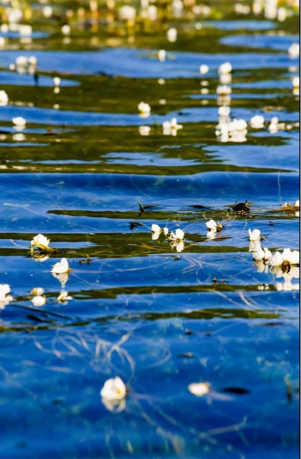我們先登上【里格半島】,這個(gè)美麗的半島是瀘沽湖最具代表性的攝影圣地,這里有碧波如鏡的湖面,高空的白云和四周的山峰清晰地倒影水中,把湖山天影融為晶瑩的一體,微風(fēng)徐來(lái),湖面上便蕩起層層漣漪,給靜謐的瀘沽湖添上一份生機(jī)靈動(dòng)。然后我們來(lái)到島上的【情人灘】,灘邊上的樹(shù)都是成對(duì)生長(zhǎng)的,猶如情侶一般不離不棄地屹立在湖邊,情人灘的名字也由此而來(lái);情人灘還有著瀘沽湖聞名遐邇的一道風(fēng)景——【水性楊花】,一朵朵純潔的小白花星星點(diǎn)點(diǎn)零落分布,遠(yuǎn)看卻又聲勢(shì)浩當(dāng)?shù)摹鞍哉肌绷苏麄€(gè)湖面,細(xì)長(zhǎng)的花枝在水下隨波浪搖晃,那扭動(dòng)著的模樣像極了少女翩翩起舞,白色的花朵探出湛藍(lán)的天空和清澈的湖面,有如繁星掛滿(mǎn)夜空,美不勝收。