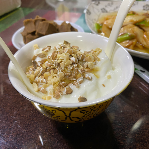 不過空氣總算清新,游覽結(jié)束,回到住處。帶著團(tuán)里的叔叔阿姨們?nèi)ァ半]源小灶私房菜”吃飯。當(dāng)?shù)厝撕芏?,等上菜半小時(shí)有余,砂鍋豆腐和牛奶雞蛋醪糟不錯(cuò)~紅油實(shí)在吃不慣,無奈接下來幾天川菜口味居多。