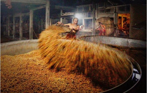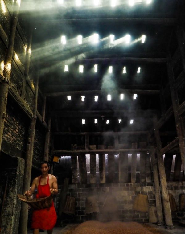 一上午時(shí)間拍攝酒廠的各道工作流程,在百年建筑里,光線灑落在整個(gè)車間,熱氣蒸騰的畫面;下午到達(dá)太平古鎮(zhèn)記錄川南古鎮(zhèn)的特色建筑等。