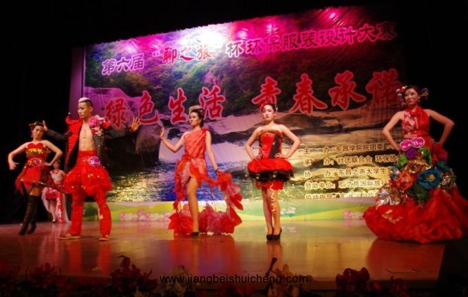比賽中,各支參賽隊伍將廢棄蚊帳、塑料袋等元素合理利用,緊貼"綠色生活,青春承諾"這一主題,創(chuàng)意獨特,給在場的觀眾帶來了一場完美的視覺盛宴,贏得了陣陣掌聲。