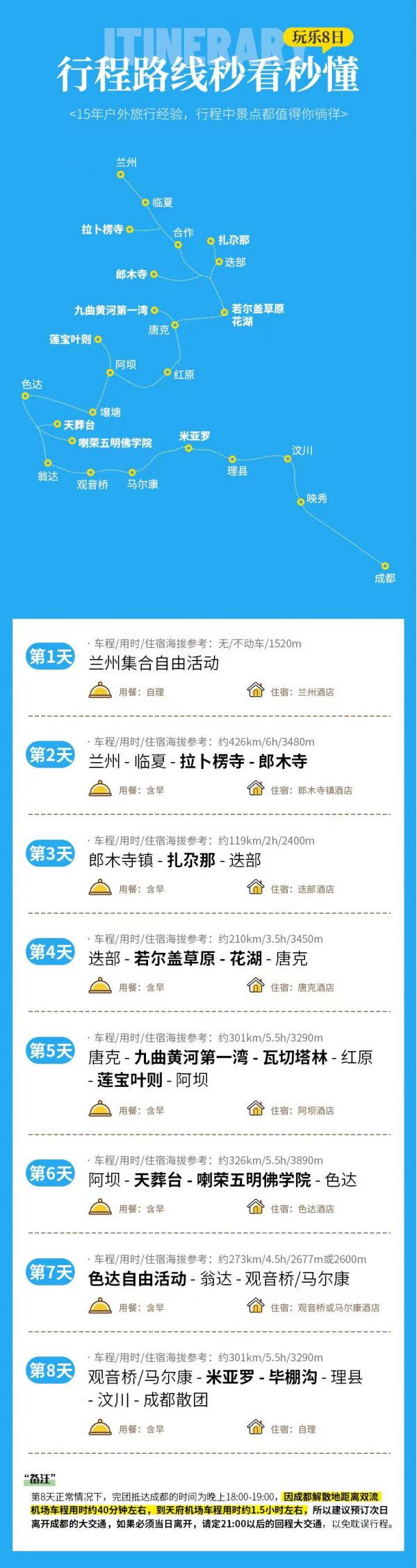 (7)沿途可能出現(xiàn)堵車、修路等不可抗因素導(dǎo)致用餐地點(diǎn)時(shí)間不穩(wěn)定,建議大家提前備好充饑零食。