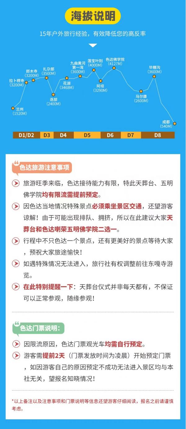 (8)旅游旺季來(lái)臨,色達(dá)接待能力有限,特此天葬臺(tái)、五明佛學(xué)院均有限流需提前預(yù)定。