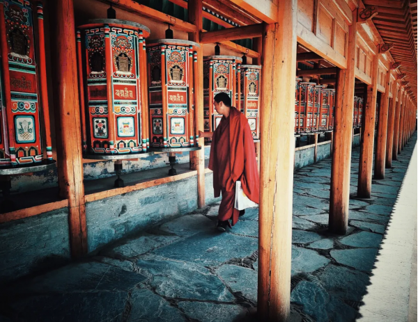 (4)在色達(dá)喇榮五明佛學(xué)院經(jīng)堂走動(dòng)時(shí),注意不要踩跨經(jīng)書(shū),書(shū)包,經(jīng)架,以及出家人的披單,法裙等。不要用手隨意觸摸經(jīng)堂內(nèi)陳列的各種法器,唐卡。在佛學(xué)院與人打招呼,可以雙手合十,說(shuō)“扎西德勒或者阿彌陀佛”。