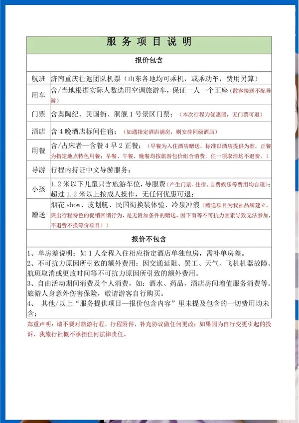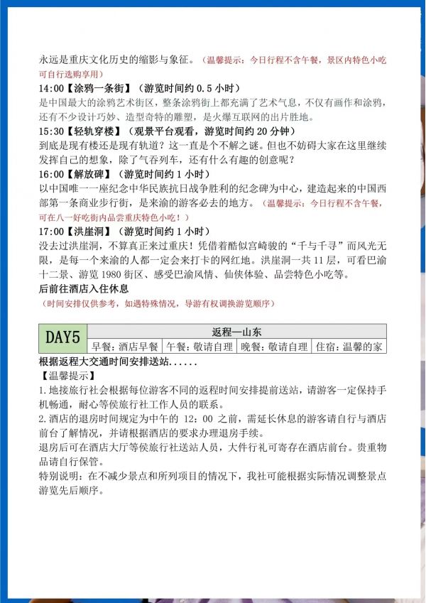 重慶雙飛5日游